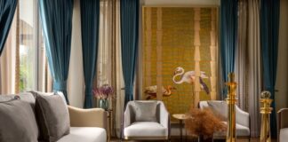 Azure Interiors Crafts Luxe Living Area with Gleaming Details